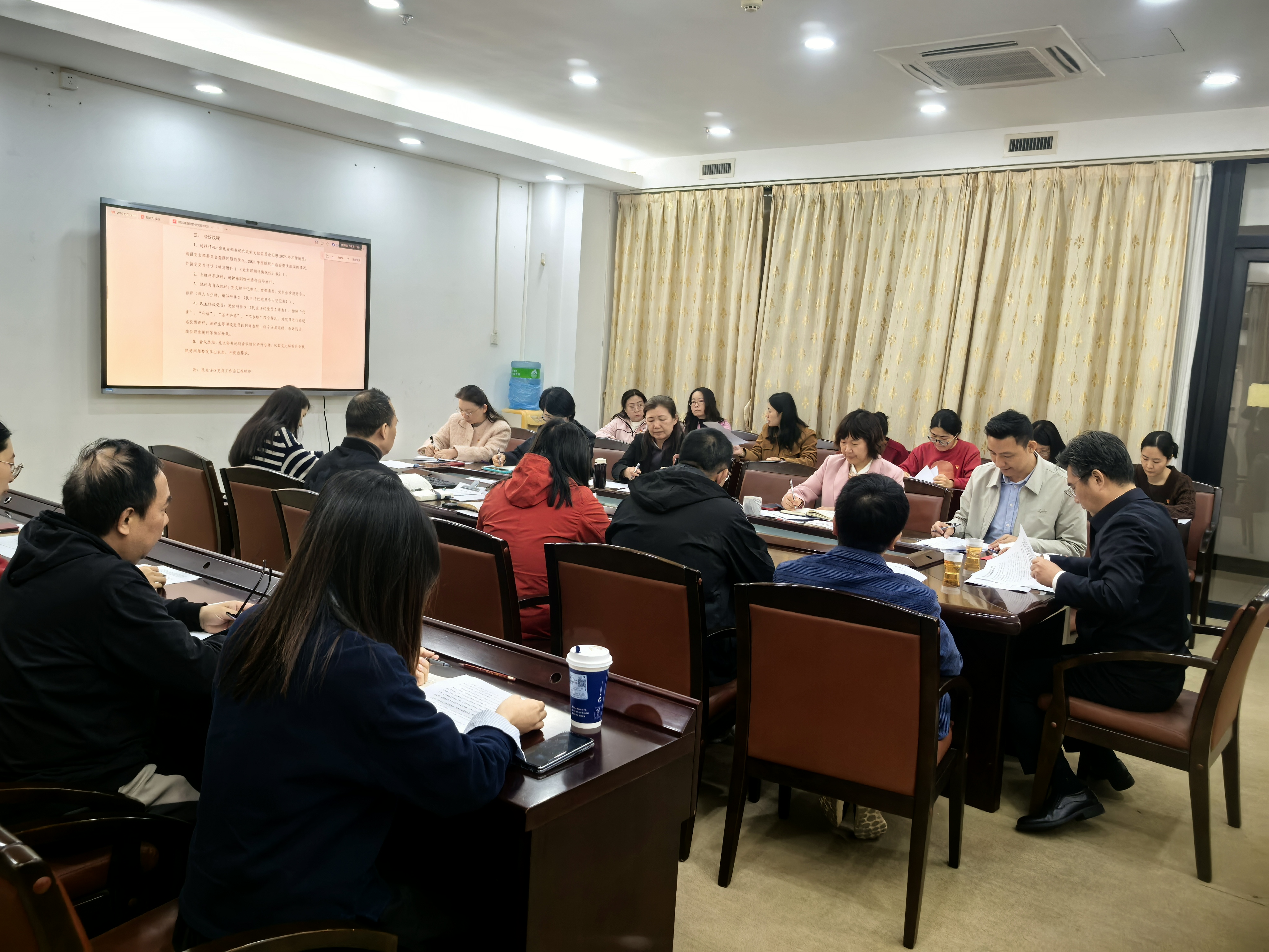 3月10日上午,财务处党支部召开2025年度组织生活会暨民主评议党员会议。校党委常委、副校长钟强以财务处党支部普通党员身份出席会议,支部书记郭迪杰主持会议,支部全体党员参加会议。